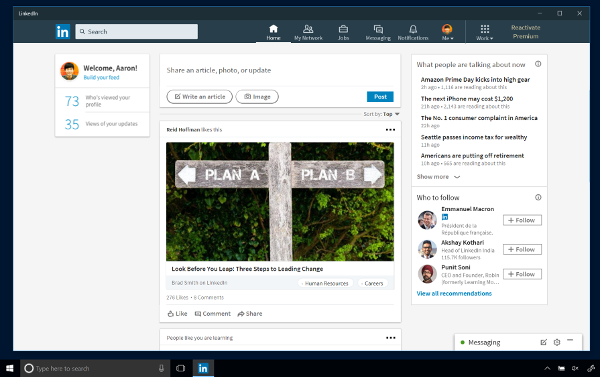 Boosting Microsoft’s integration plans, LinkedIn releases new Windows 10 app
