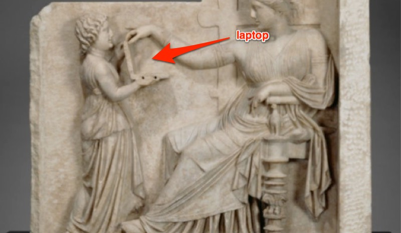 In a story worthy of an episode of History Channel’s Ancient Aliens kooks, conspiracy theorists, and other people who are likely vegan are apparently claiming that an ancient Greek funeral stele (grave marker) is proof of time travel because it includes a laptop. The marker, named “Grave Naiskos of an Enthroned Woman with an Attendant” ...