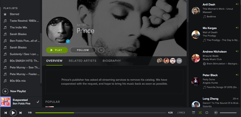 The artist known as Prince, but previously known as a symbol, before that Prince, but born Prince Roger Nelson, has withdrawn his music from the majority of streaming music sites, ostensibly in a “I’m a greedy rich musician” Taylor Swift style play. According to reports, Prince’s music has been withdrawn from services from Spotify AG, ...