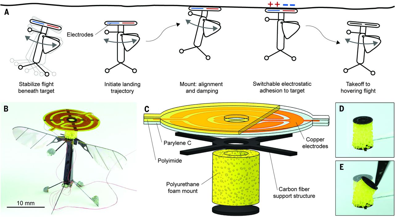 RoboBee is a bug-sized drone capable of landing on any wall