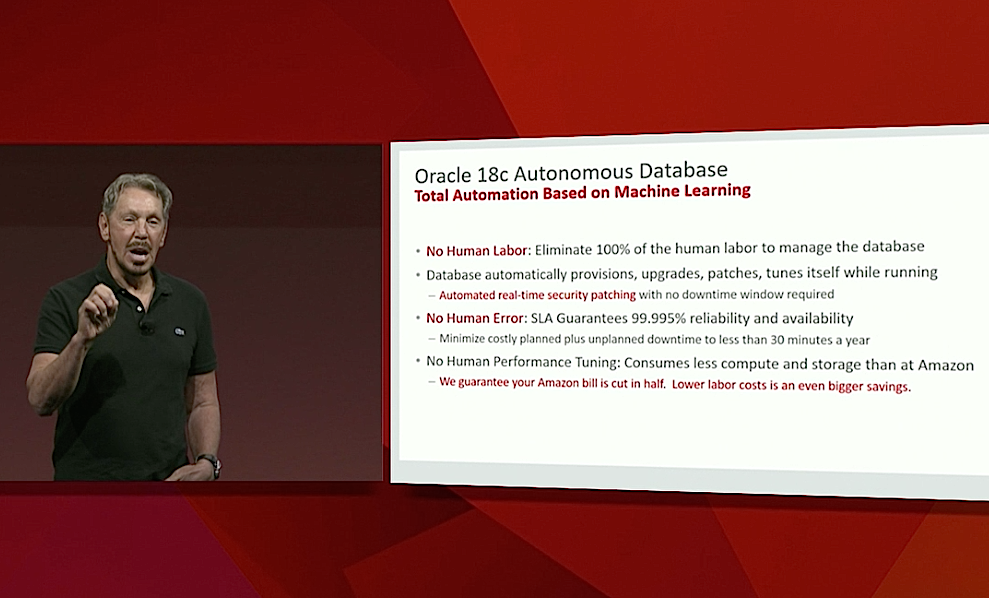 Targeting cybersecurity, Larry Ellison debuts Oracle’s new ‘self-driving’ database