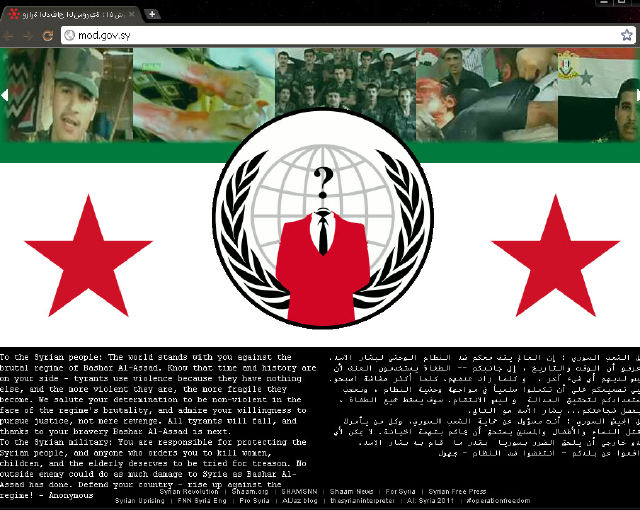 Anonymous Defaces Syria’s Ministry of Defense Website, Castigates Current Regime